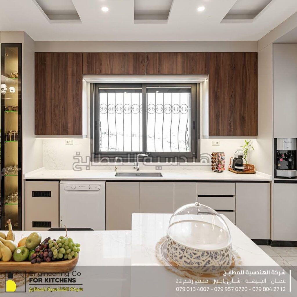 تصاميم مطابخ تجمع بين الأناقة والهدوء والعملية -مطابخ خشبية من Laminate تتميز بألوان مريحة ولمسة عصرية عملية.
